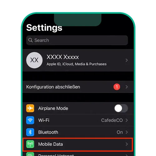 • 1. Open "Settings" > "Mobile Data"